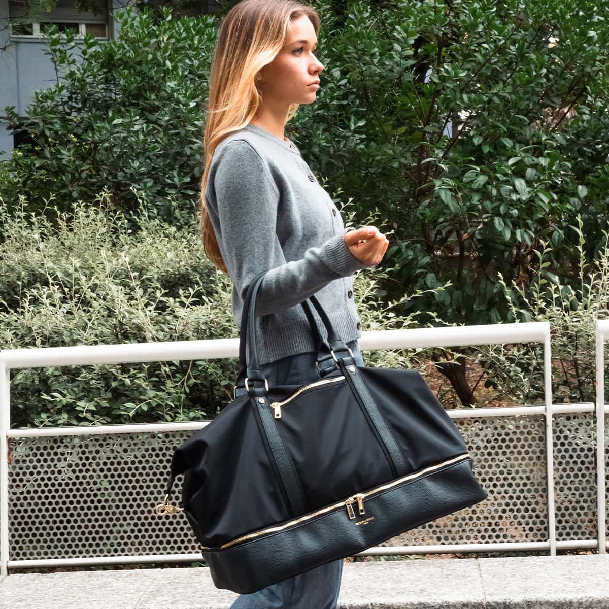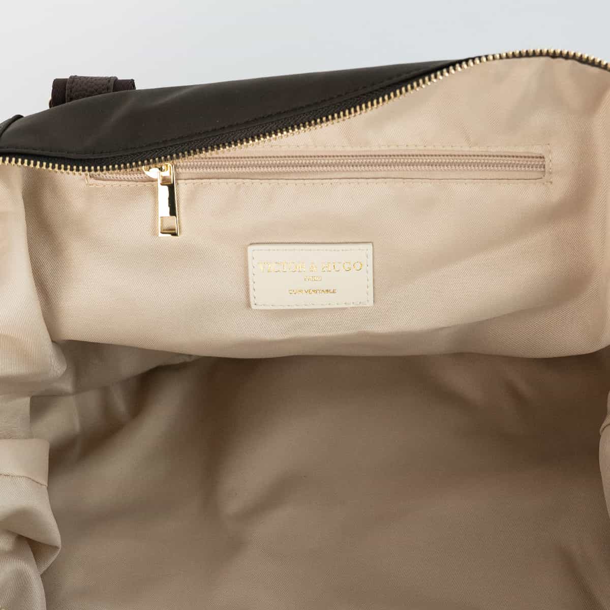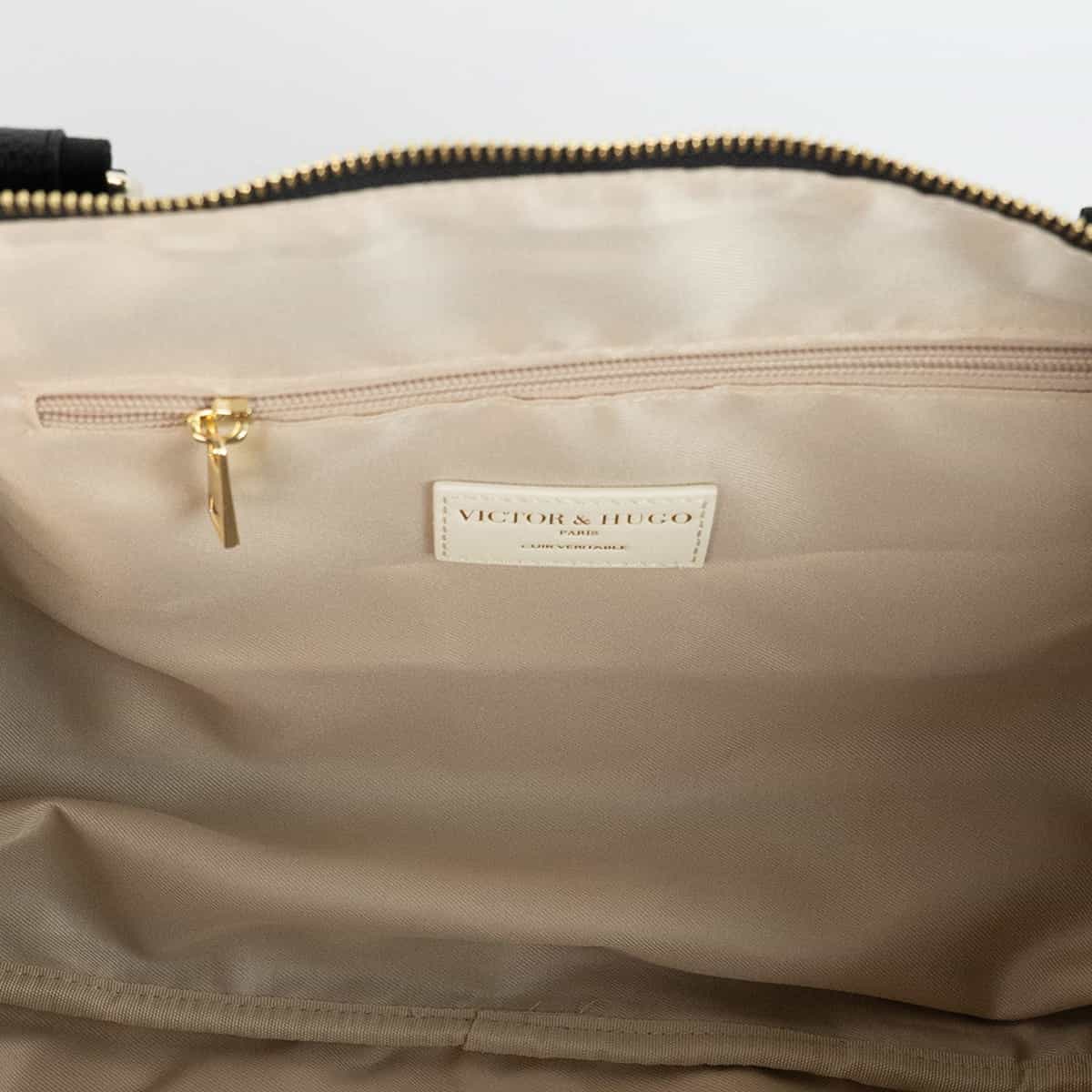 Le sac Andia en nylon et cuir véritable se distingue par son design structuré et ses finitions soignées.Il dispos de deux anses rigides pour un porté main confortable et d’une bandoulière amovible pour un porté épaule.L’exterieur est rythmé par plusieurs poches zippées à l’avant et à l’arrière idéales pour garder vos indispensables à portée de main.Une large fermeture zippée à la base permet d’accéder à un compartiment indépendant.L’interieur du sac est entierement doublé en polyester et offre un espace genereux pour vos effets personnels.