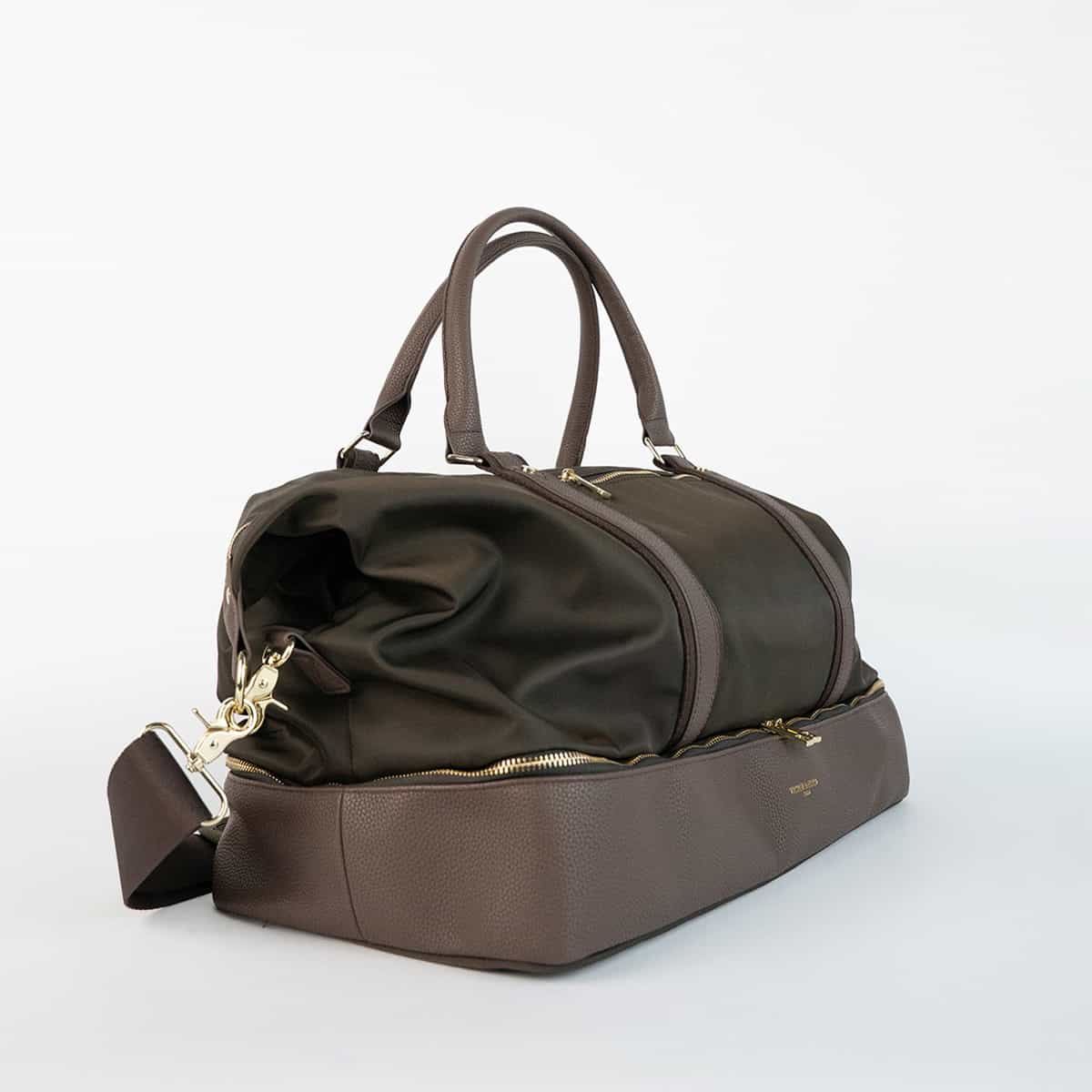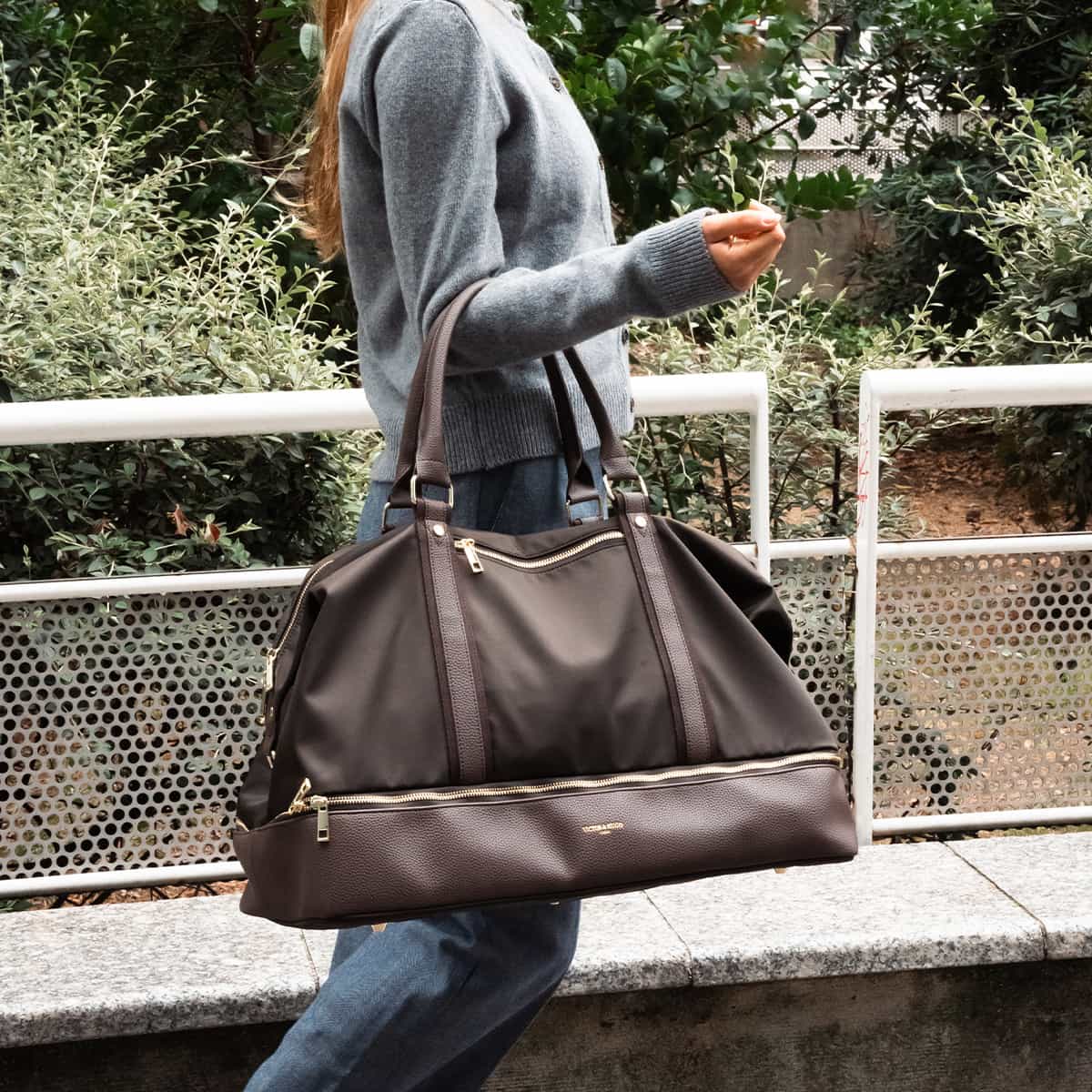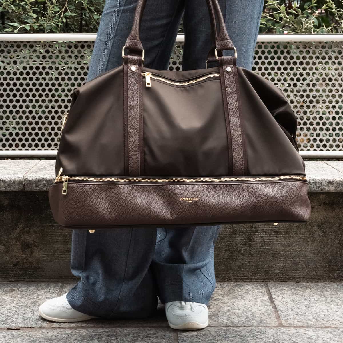 Le sac Andia en nylon et cuir véritable se distingue par son design structuré et ses finitions soignées.Il dispos de deux anses rigides pour un porté main confortable et d’une bandoulière amovible pour un porté épaule.L’exterieur est rythmé par plusieurs poches zippées à l’avant et à l’arrière idéales pour garder vos indispensables à portée de main.Une large fermeture zippée à la base permet d’accéder à un compartiment indépendant.L’interieur du sac est entierement doublé en polyester et offre un espace genereux pour vos effets personnels.