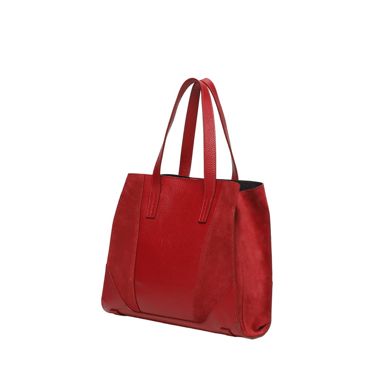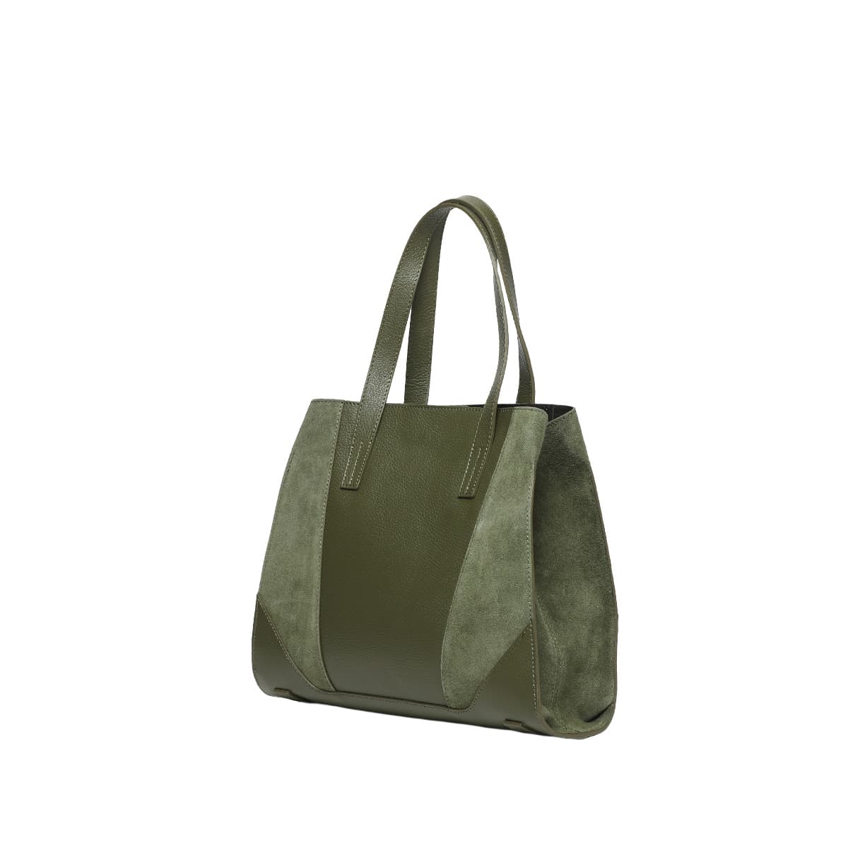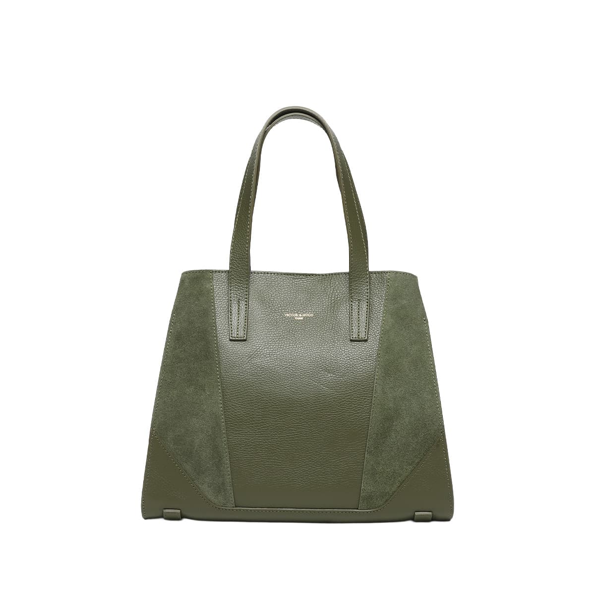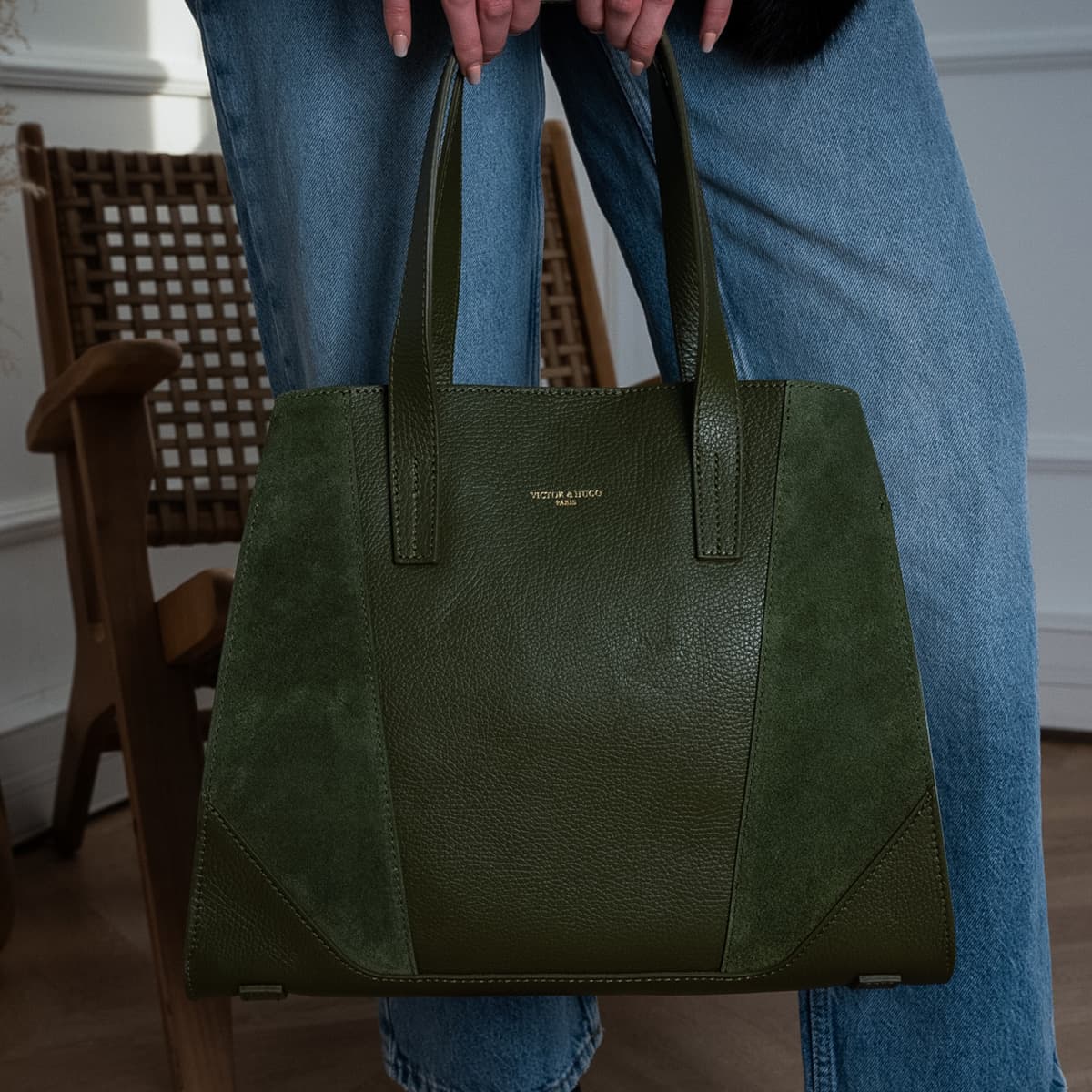 Sac porté épaule, avec une fermeture par bouton de pression. Un grand compartiment avec une pochette sur le côté du sac.