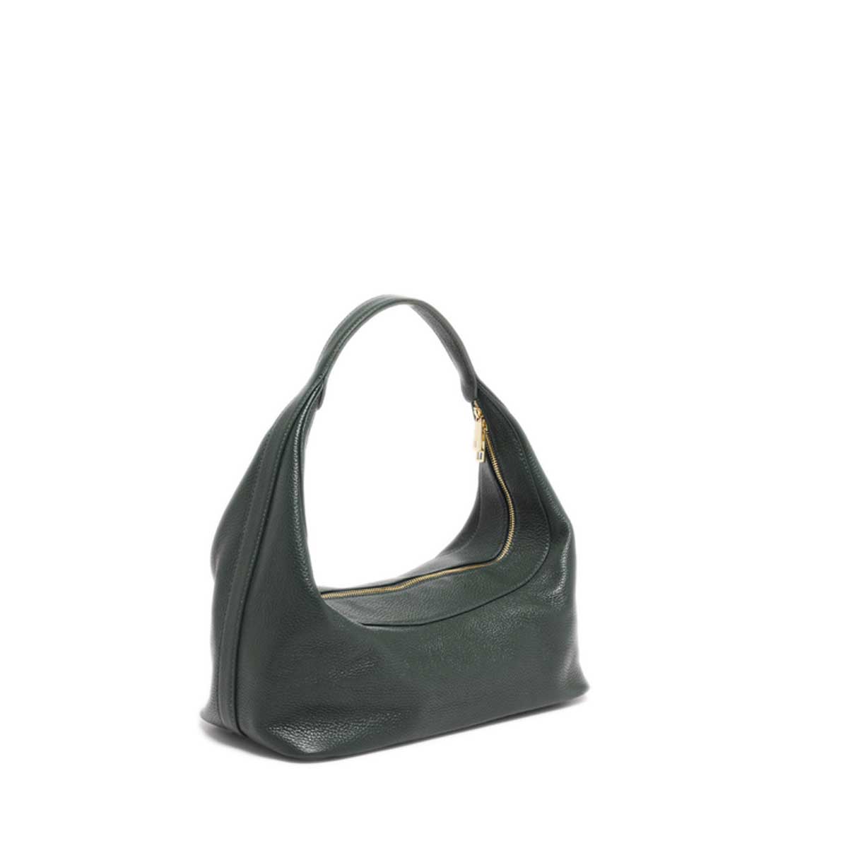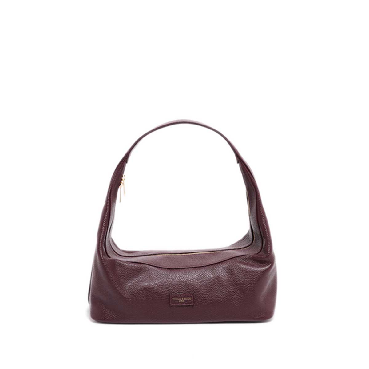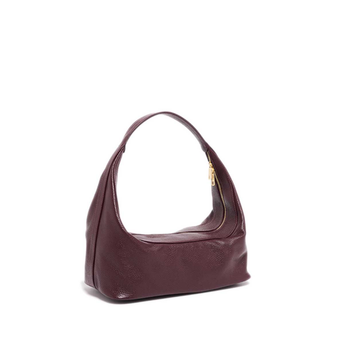 Sac à épaule avec une fermeture éclair principale, une petite poche intérieure zippée et une autre petite poche sans fermeture.
