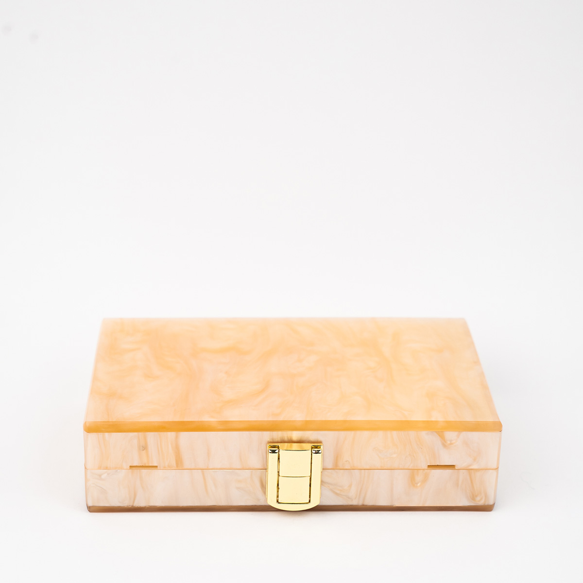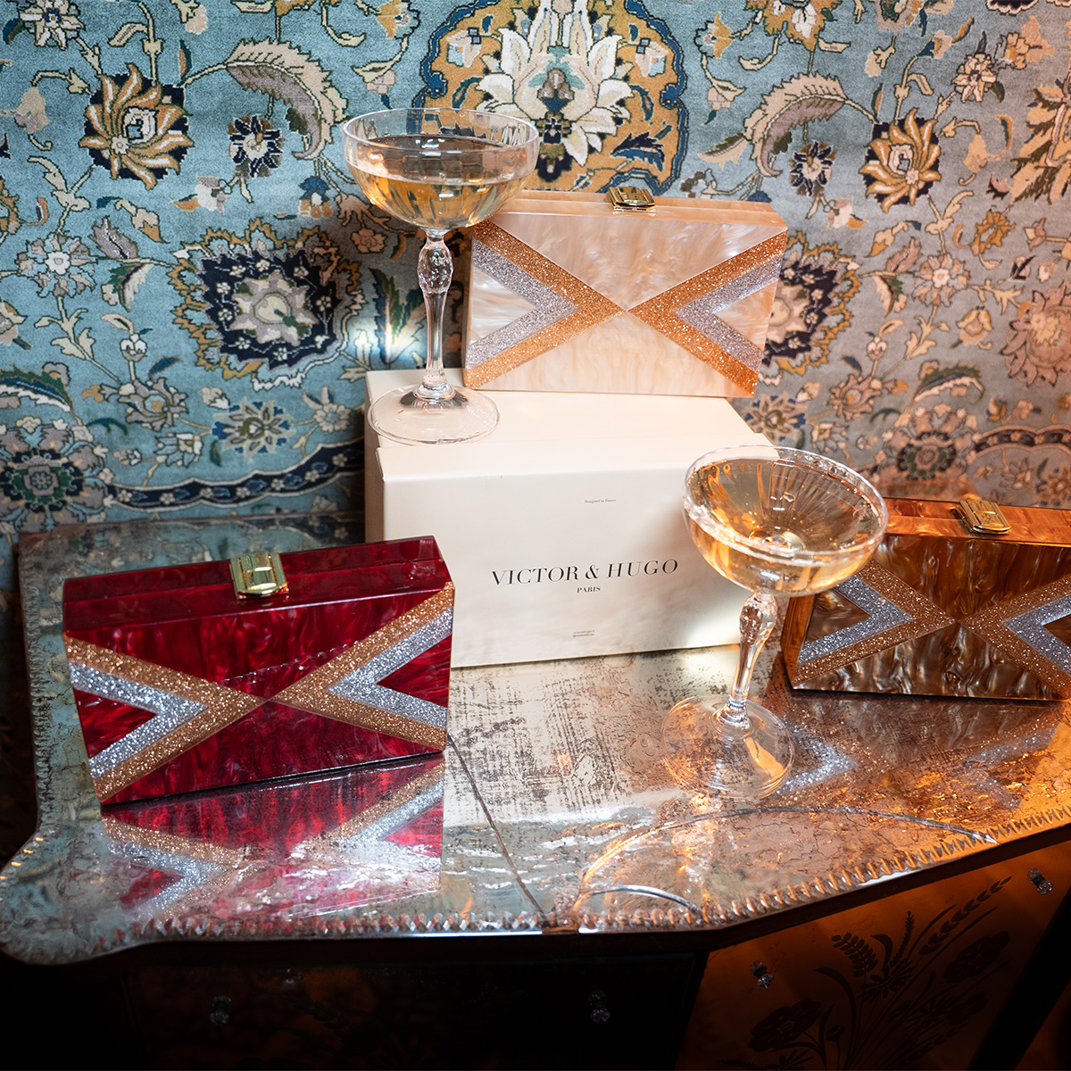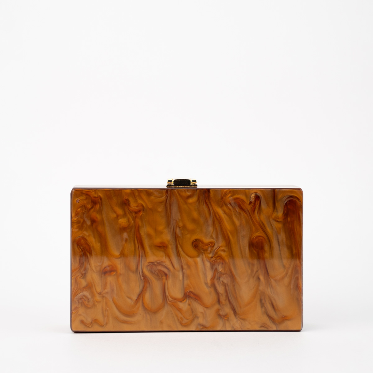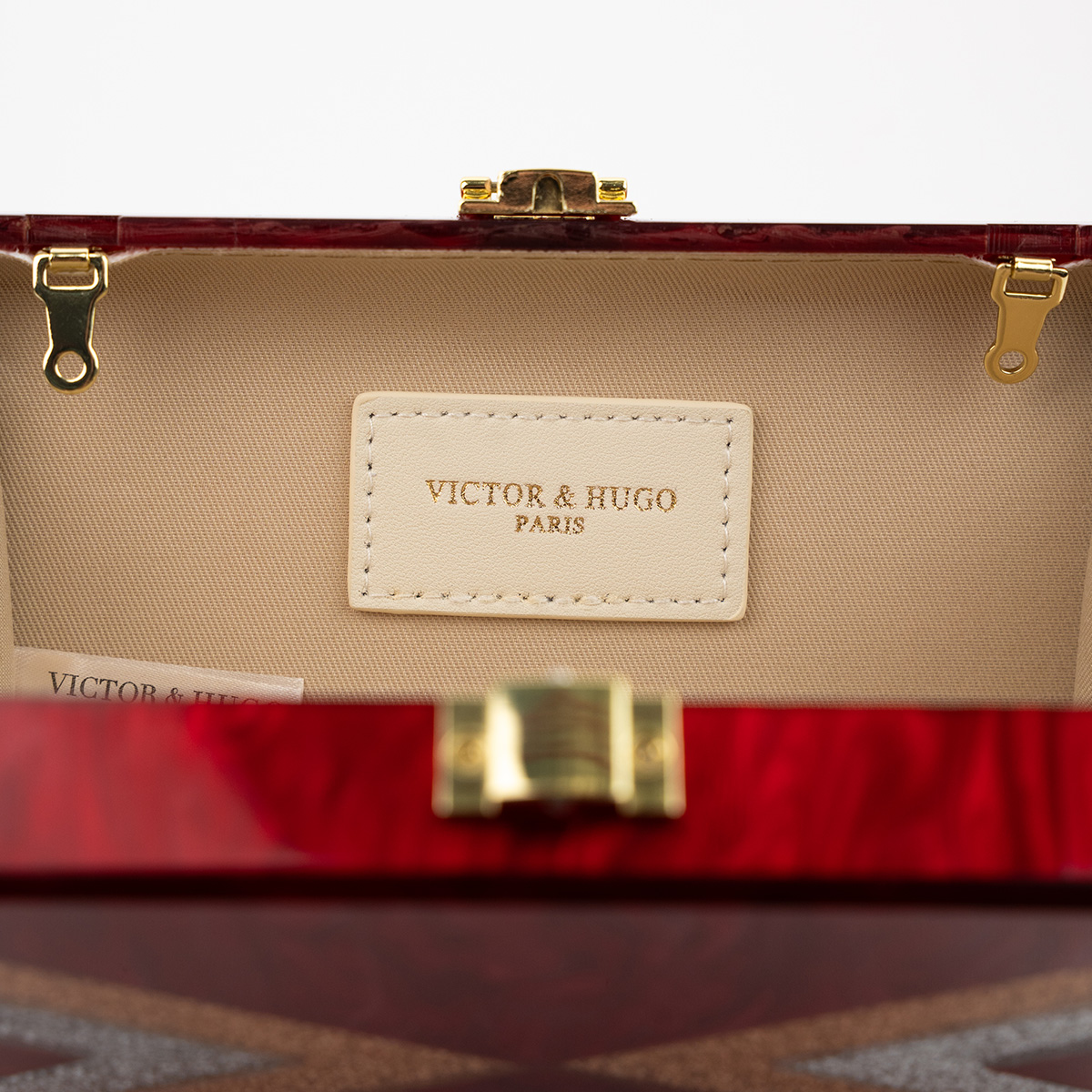 Le sac Crysta séduit par on design graphique audacieux et son aspect nacré.Son format rectangulaire structuré et entierement réalisé en acrylic effet marbré avec un motif géométrique en paillettes sur la face avant offrant un jeu de lumire élégant et festif.Il se ferme grace à un fermoir en métal doré situé sur le dessus.Le sac est entièrement doublé de polyester pour protéger vos effets personnels.Le modèle est accompagné d’une bandoulière amovible pour un porté croisé.Un accessoire chic et moderne idéal pour sublimer une tenue de soirée ou ajouter une touche de glamour à une silhouette plus minimaliste.