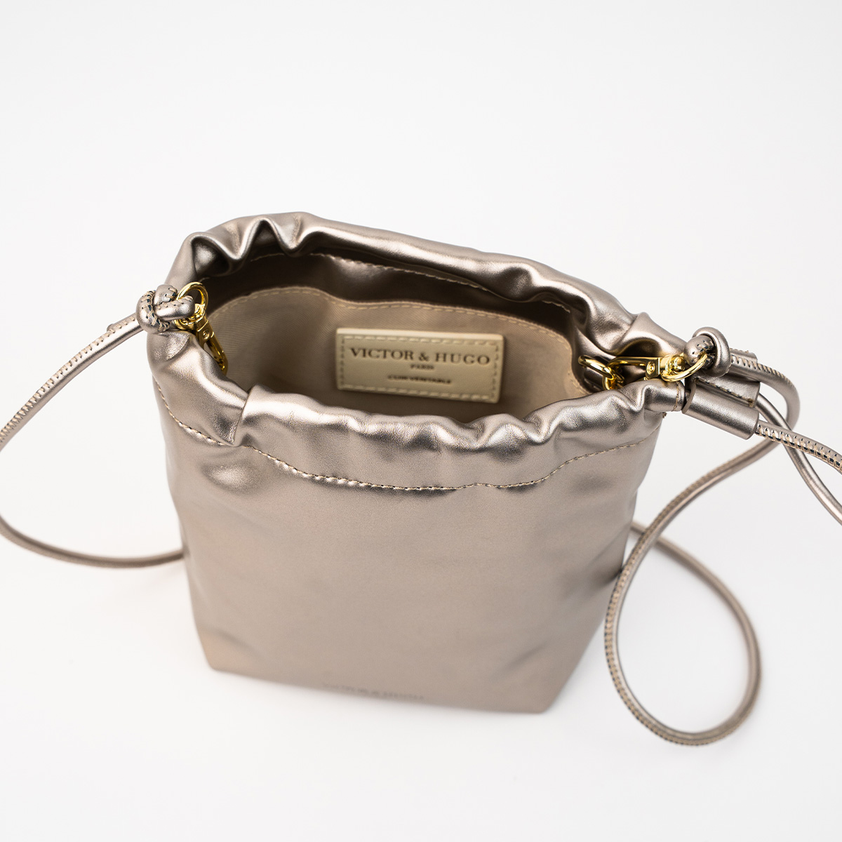 Le sac Elva en cuir véritable se distingue par sa forme seau minimaliste et son design tout en souplesse.Son format compact est complété par une fine bandoulière ajustable idéale pour un porté croisé au quotidien.La fermeture par cordons coulissant apporte une touche decontractée tout en maintenant vos effets personnels en sécurité.Entirement doublé en polyester l’interieur offre un compartiment principal spacieux parfait pour emporter vos essentiels avec style.