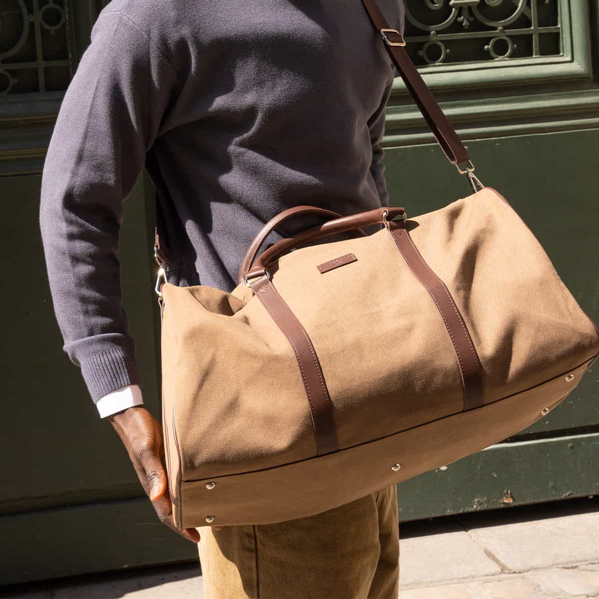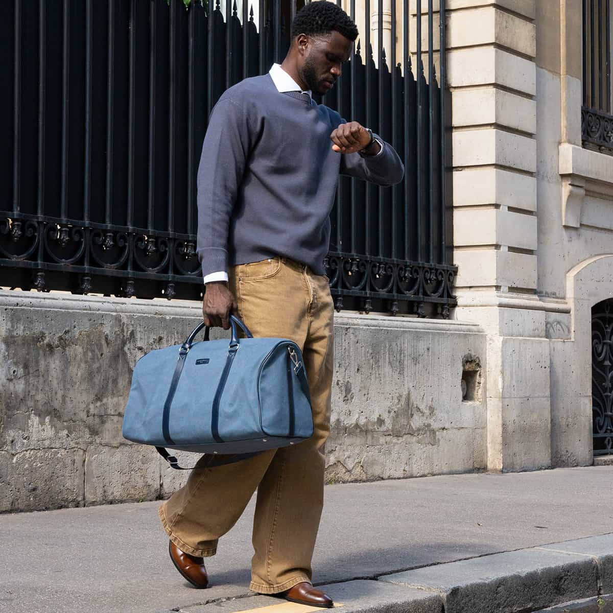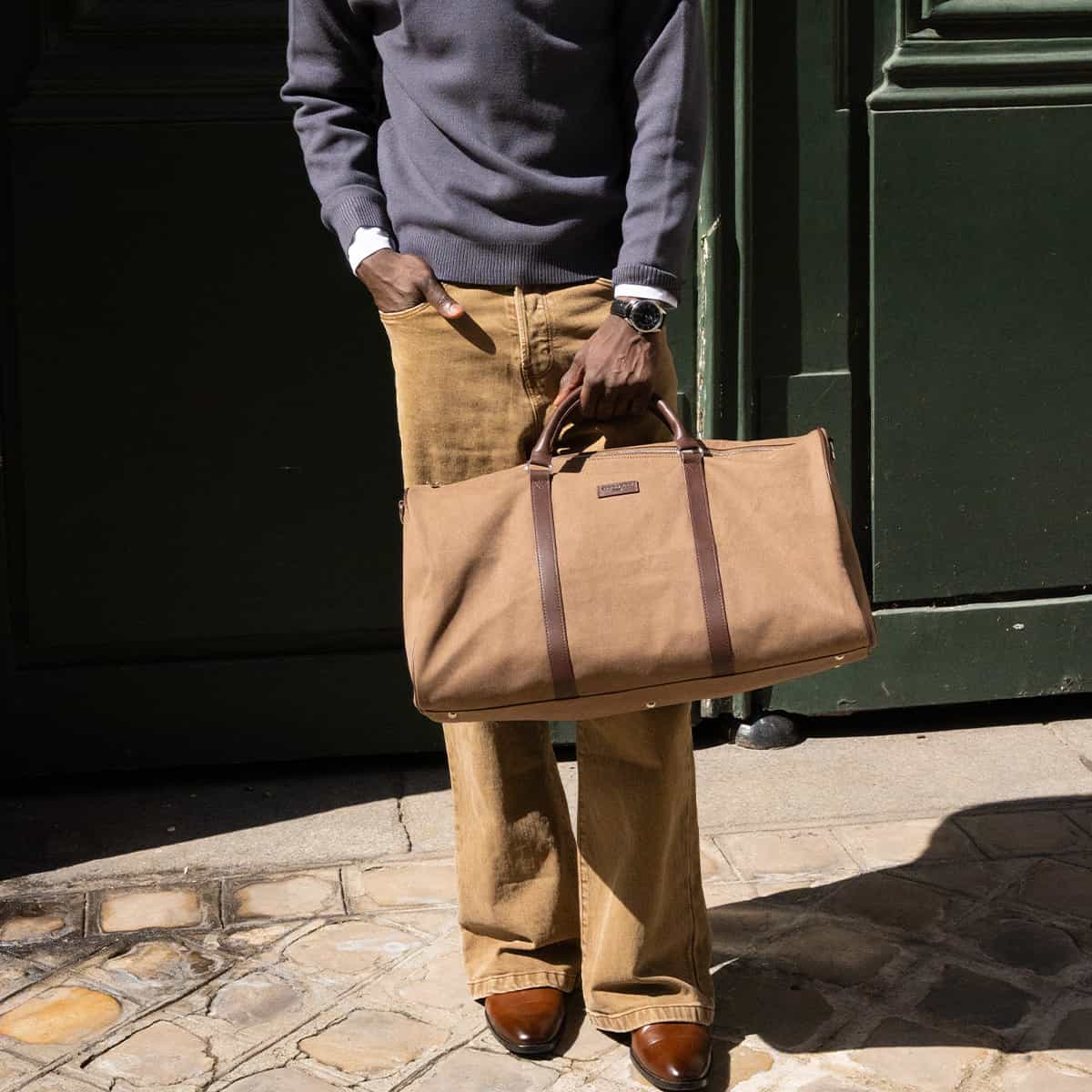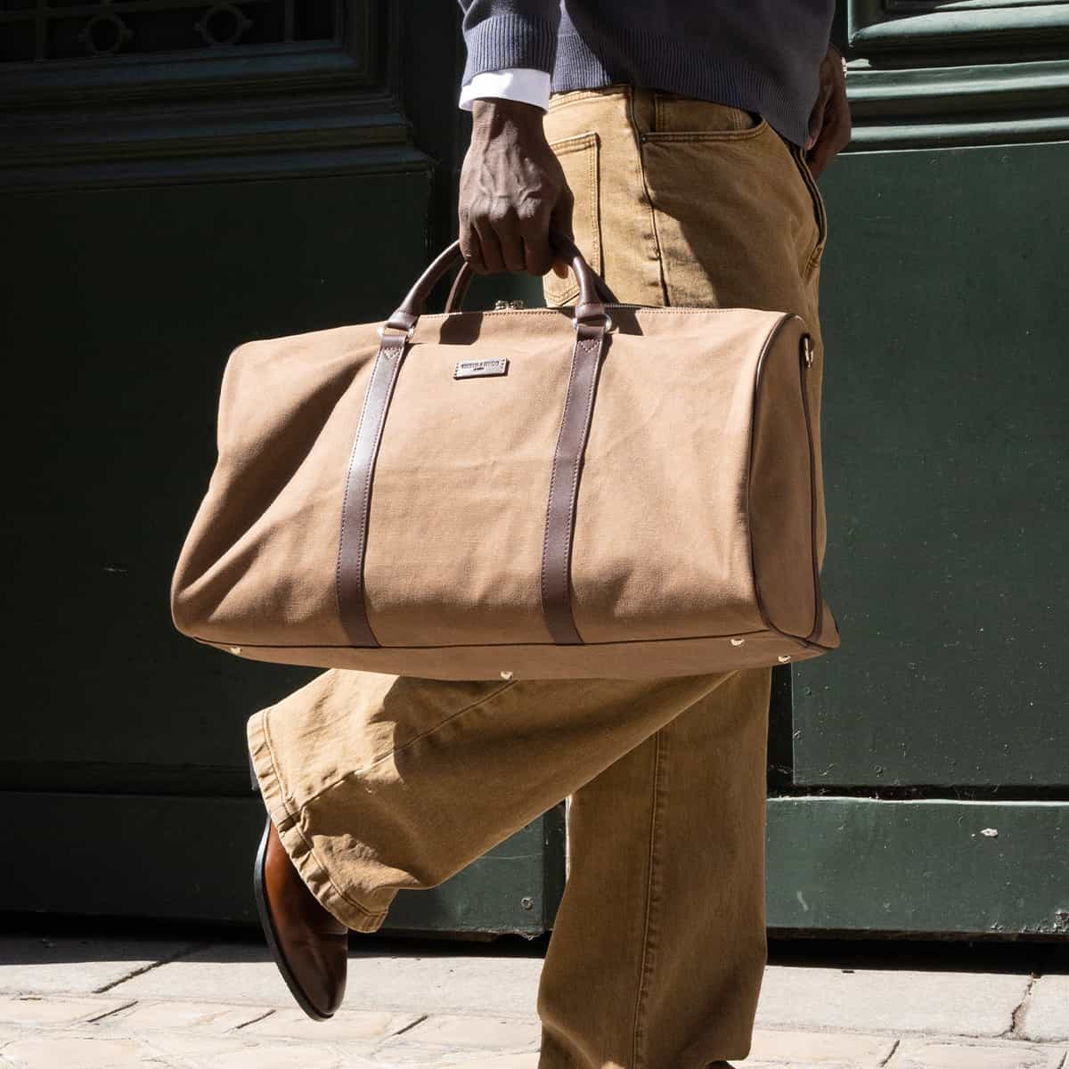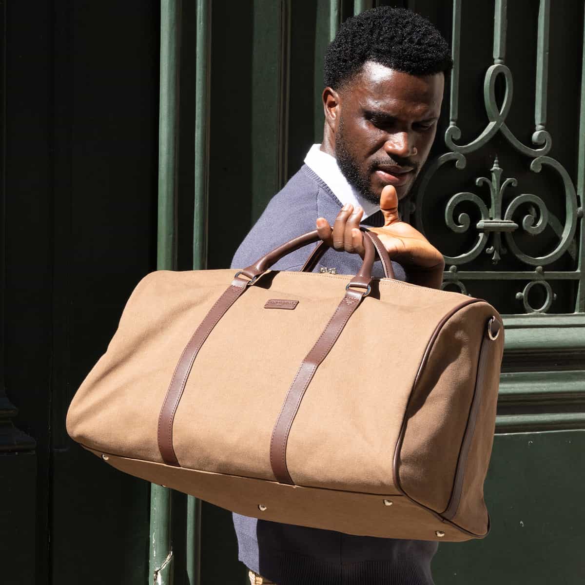 Sac de voyage Jude en canva sublimé par des finitions en cuir qui lui confèrent une allure élégante et intemporelle.Son format spacieux et parfait pour les week-end ou courts sejours.Il est équipé de deux anses rigides pour un porté main confortable ainsi qu’une bandouliere amovible et ajustable pour un porté croisé pratique.A l’extrerieur une etiquette en cuir embosse Victor & Hugo Paris vient siner discretementle design.A l’interieur le sac est entierement doublé en polyester et comporteune grande poche plaquée zippée pour les essentiels.