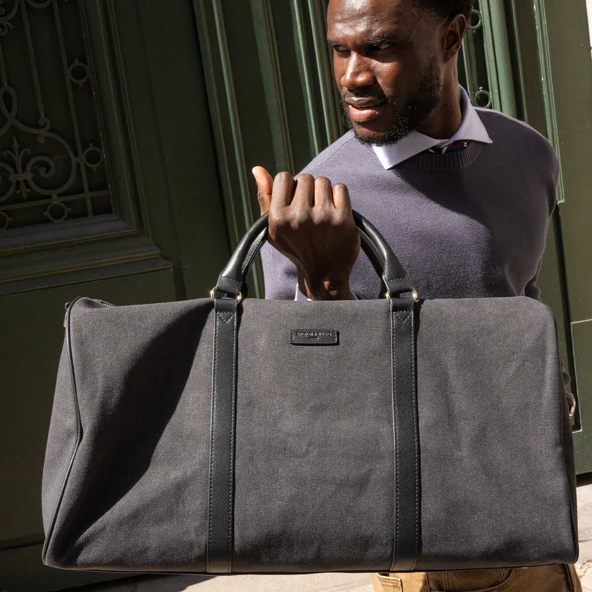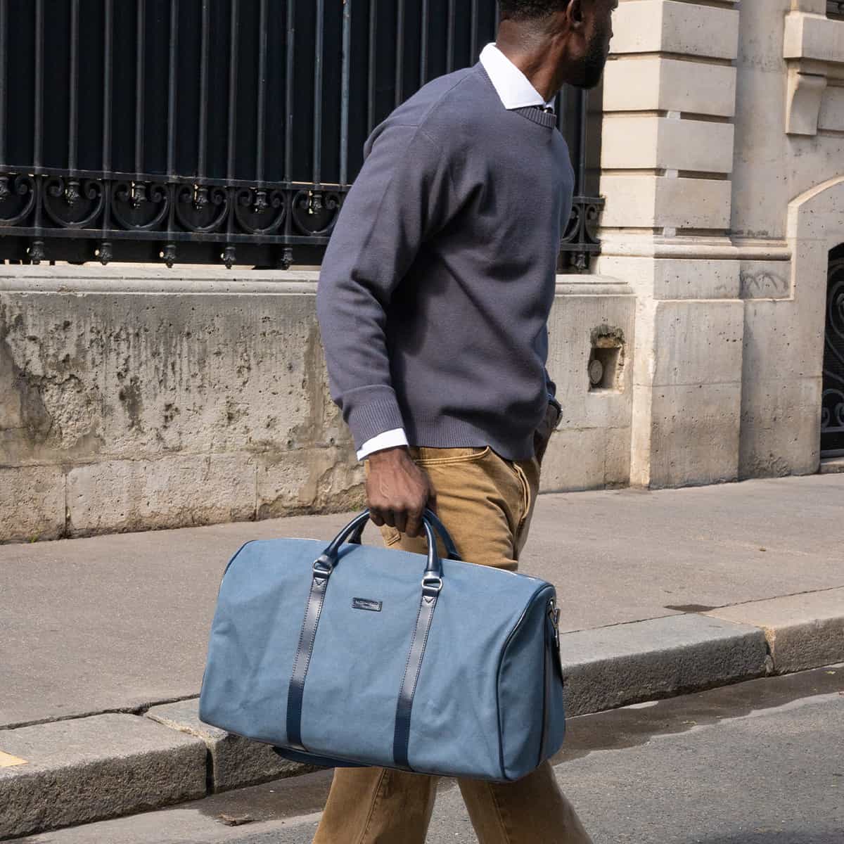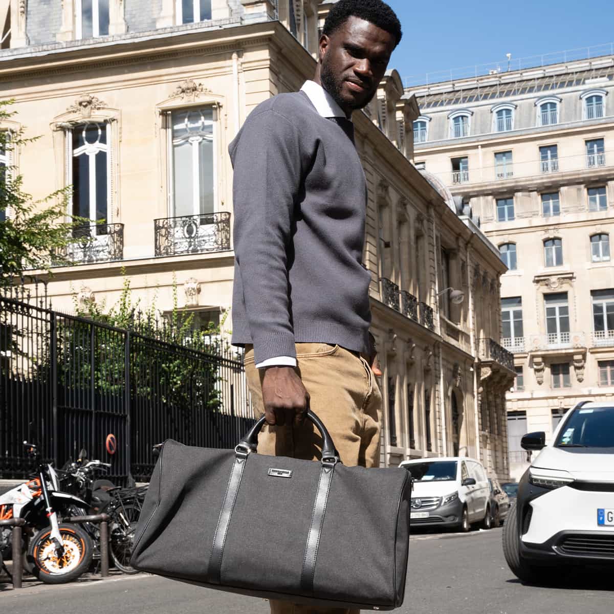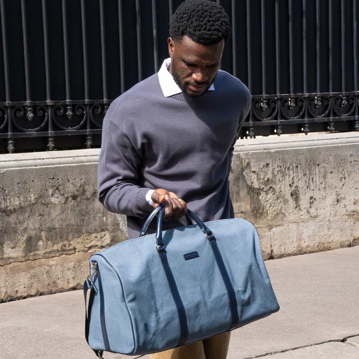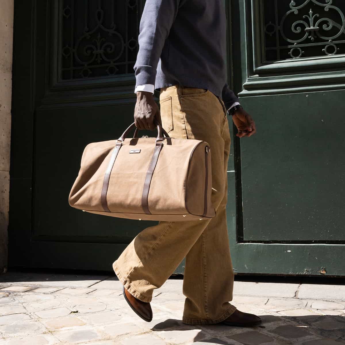 Sac de voyage Jude en canva sublimé par des finitions en cuir qui lui confèrent une allure élégante et intemporelle.Son format spacieux et parfait pour les week-end ou courts sejours.Il est équipé de deux anses rigides pour un porté main confortable ainsi qu’une bandouliere amovible et ajustable pour un porté croisé pratique.A l’extrerieur une etiquette en cuir embosse Victor & Hugo Paris vient siner discretementle design.A l’interieur le sac est entierement doublé en polyester et comporteune grande poche plaquée zippée pour les essentiels.