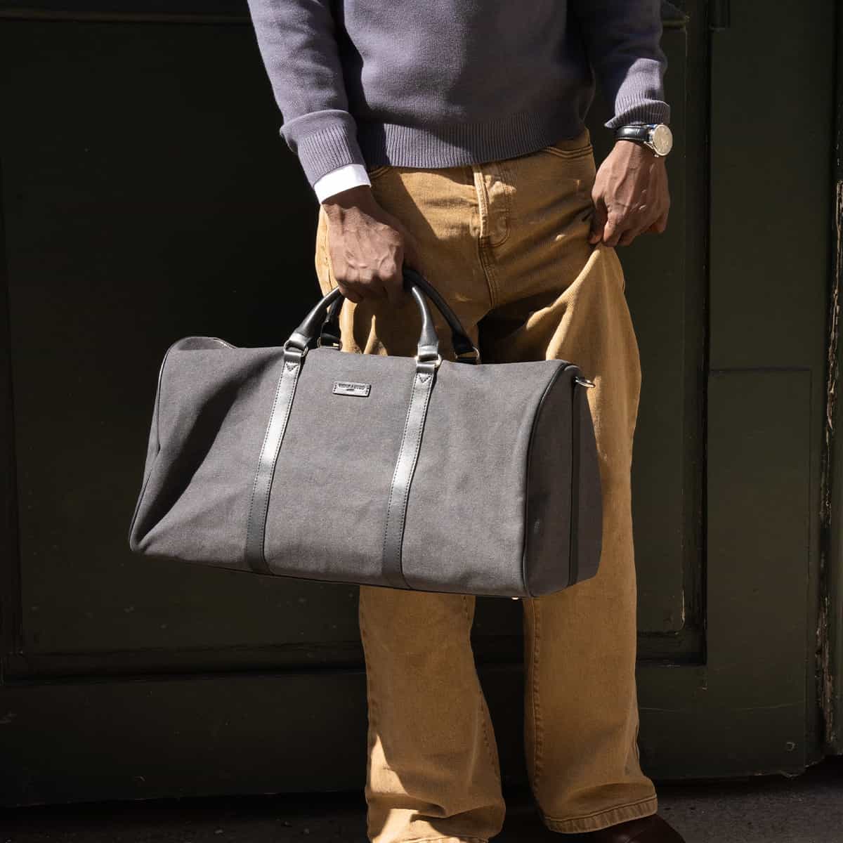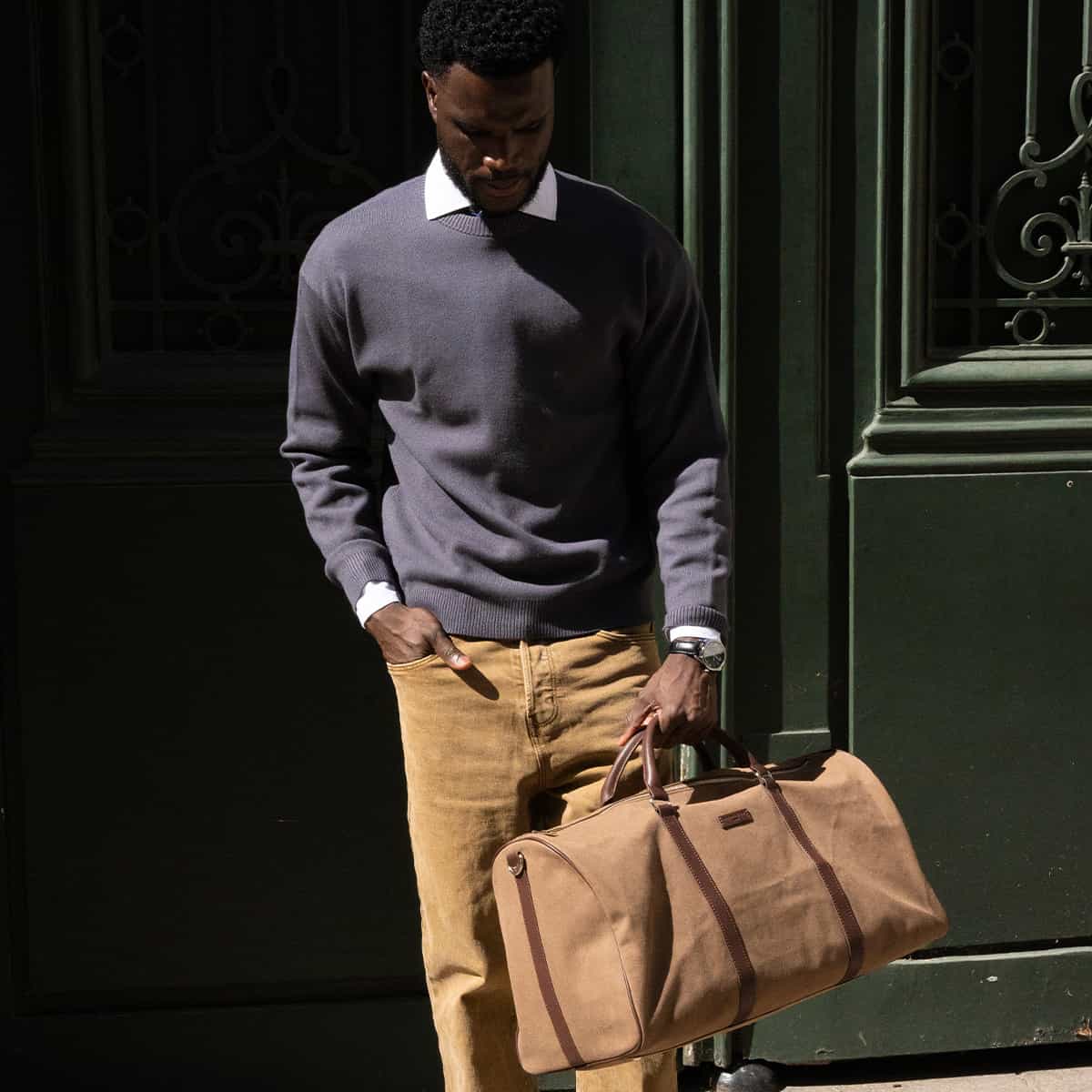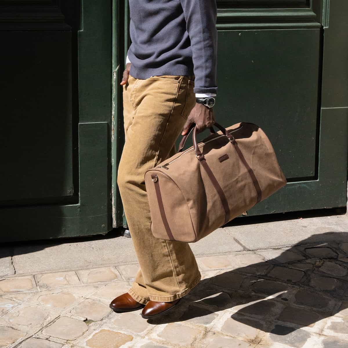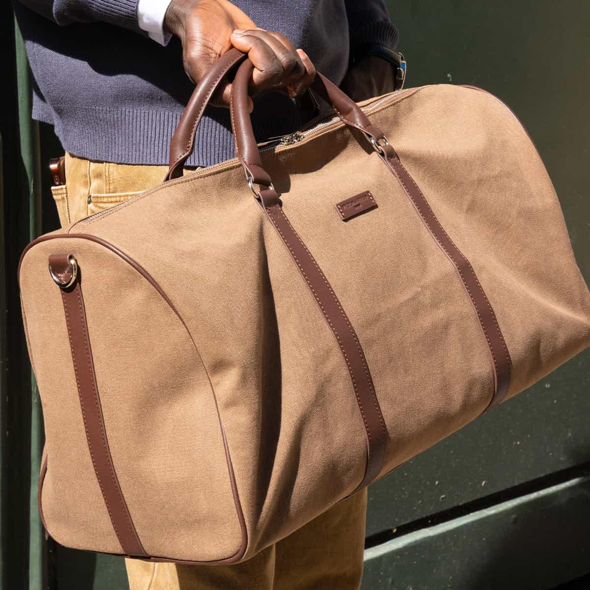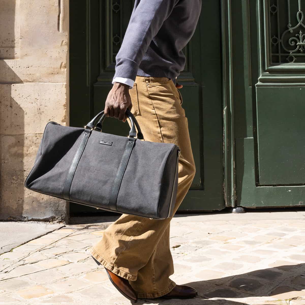 Sac de voyage Jude en canva sublimé par des finitions en cuir qui lui confèrent une allure élégante et intemporelle.Son format spacieux et parfait pour les week-end ou courts sejours.Il est équipé de deux anses rigides pour un porté main confortable ainsi qu’une bandouliere amovible et ajustable pour un porté croisé pratique.A l’extrerieur une etiquette en cuir embosse Victor & Hugo Paris vient siner discretementle design.A l’interieur le sac est entierement doublé en polyester et comporteune grande poche plaquée zippée pour les essentiels.