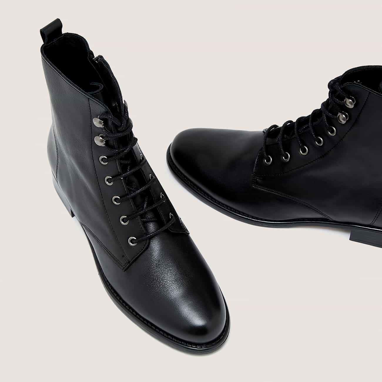 BOOTS LACETS, Matière Tige: CUIR DE VACHETTE, Matière Premiere: CUIR DE PORC, Matière Doublure: CUIR DE PORC, Semelle: ELASTOMERE, Pays de Fabrication: PORTUGAL, Type de Bout: BOUT ROND, Type de Fermeture: A ZIP, Hauteur de talon: 3.