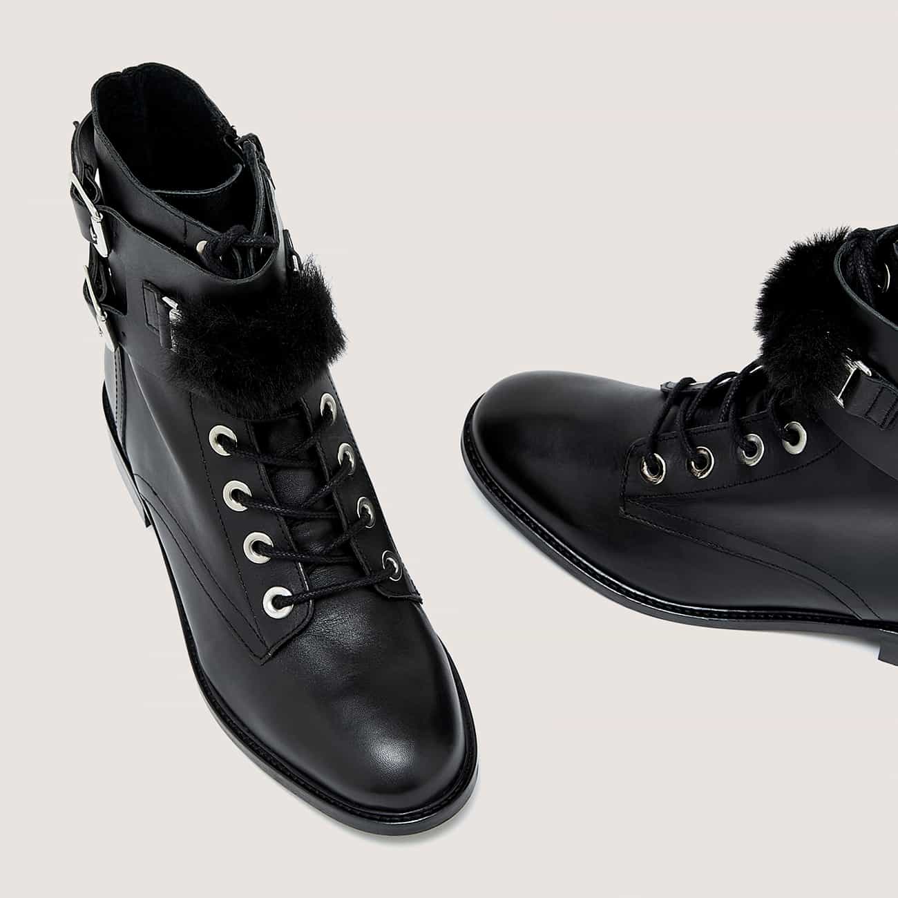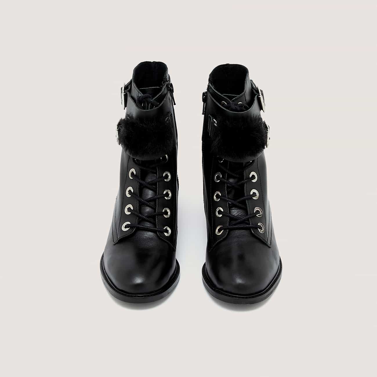 BOOTS BOUCLE, Matière Tige: CUIR DE VACHETTE, Matière Premiere: CROUTE DE CUIR, Matière Doublure: CROUTE DE CUIR, Semelle: ELASTOMERE, Pays de Fabrication: PORTUGAL, Type de Bout: BOUT ROND, Type de Fermeture: A ZIP, Hauteur de talon: 3.