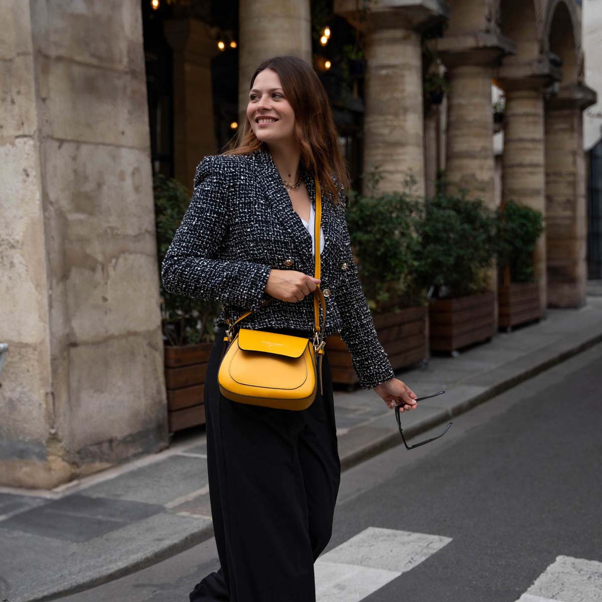 Doté d’une bandoulière ajustable et amovible, il s’adapte à toutes vos envies, pour un porté main ou épaule selon l’occasion. Un accessoire intemporel qui allie style et praticité avec finesse.