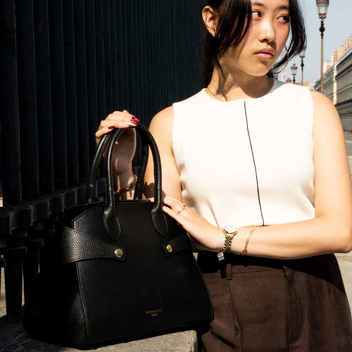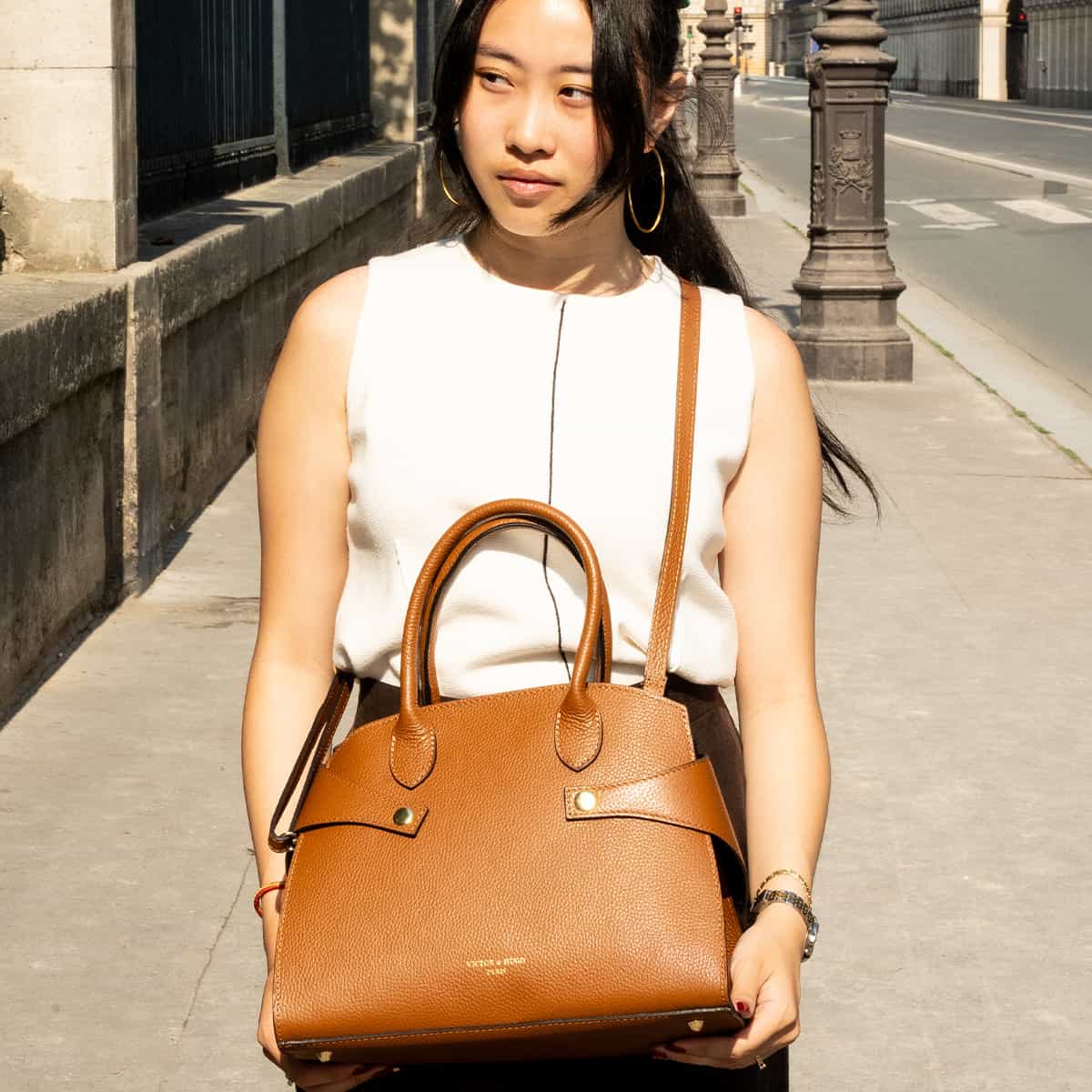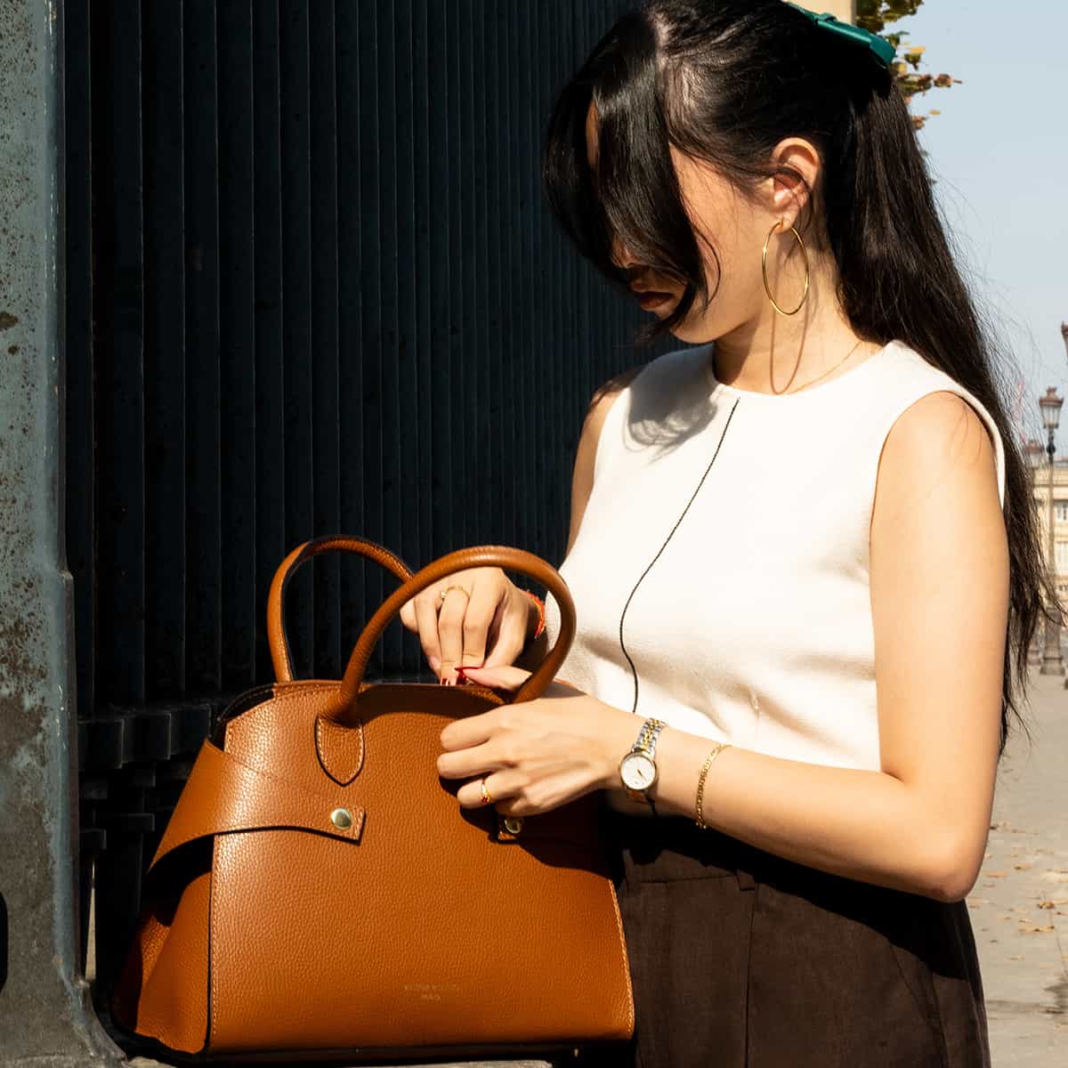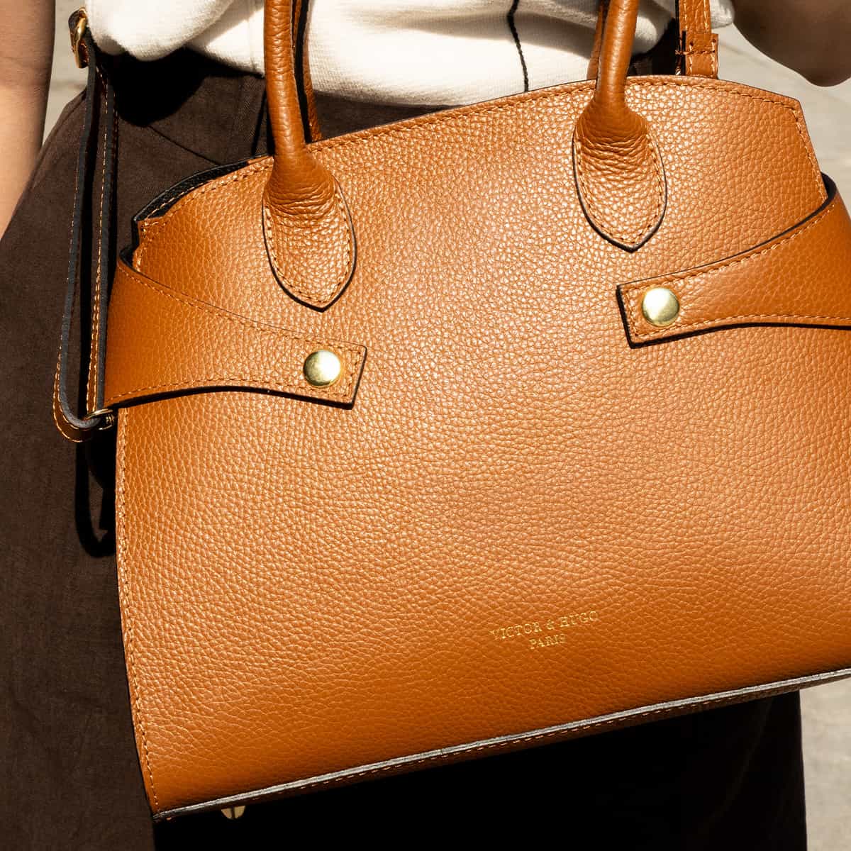 LUZD, un sac au design structuré qui allie élégance et fonctionnalité au quotidien. Confectionné en cuir de vachette grainé, il est rehaussé de deux fermoirs métalliques distinctifs. Son format de 31x24x16 cm, avec un intérieur doublé de polyester, est pensé pour organiser vos essentiels. Polyvalent, il se porte à la main ou à l’épaule avec sa bandoulière externe.