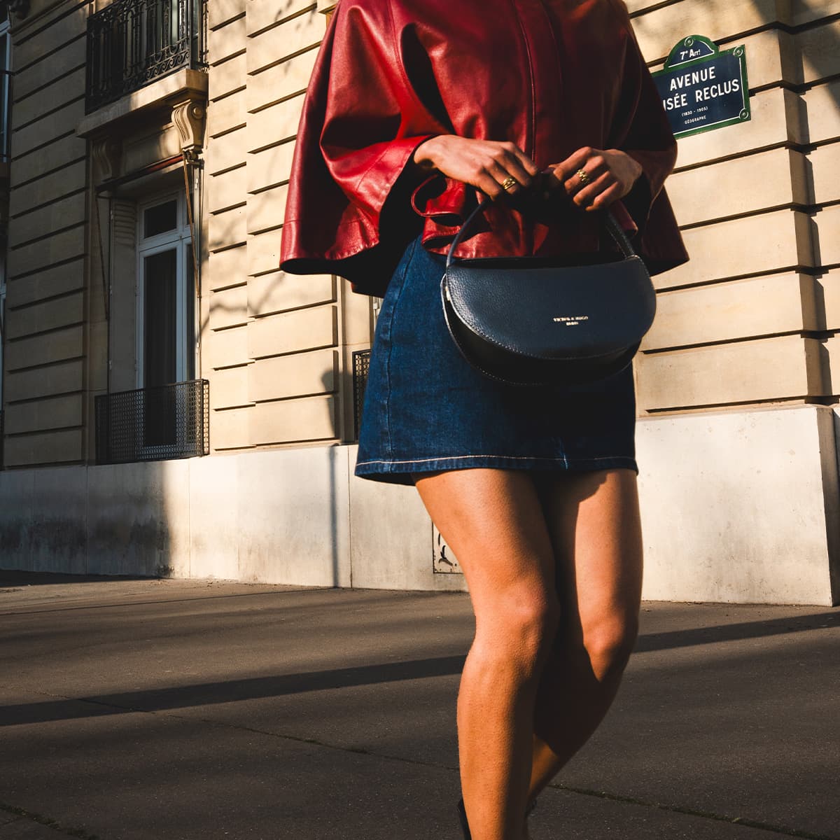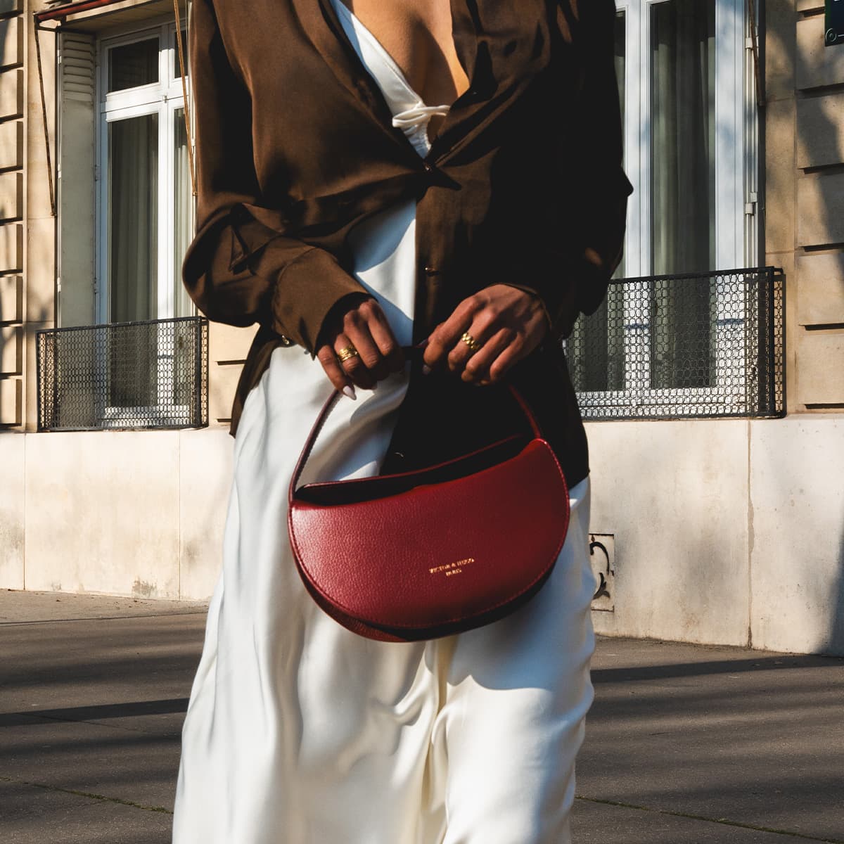 Sac à main élégant doté d’une bandoulière réglable et amovible pour un port en bandoulière. Ce sac se distingue par son système de fermeture magnétique et son design plié sur le dessus, offrant une touche moderne et pratique.