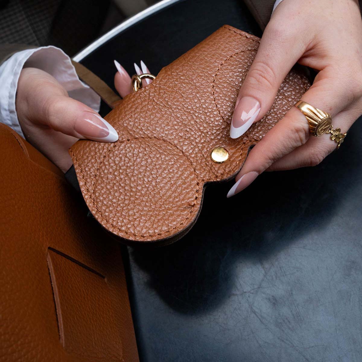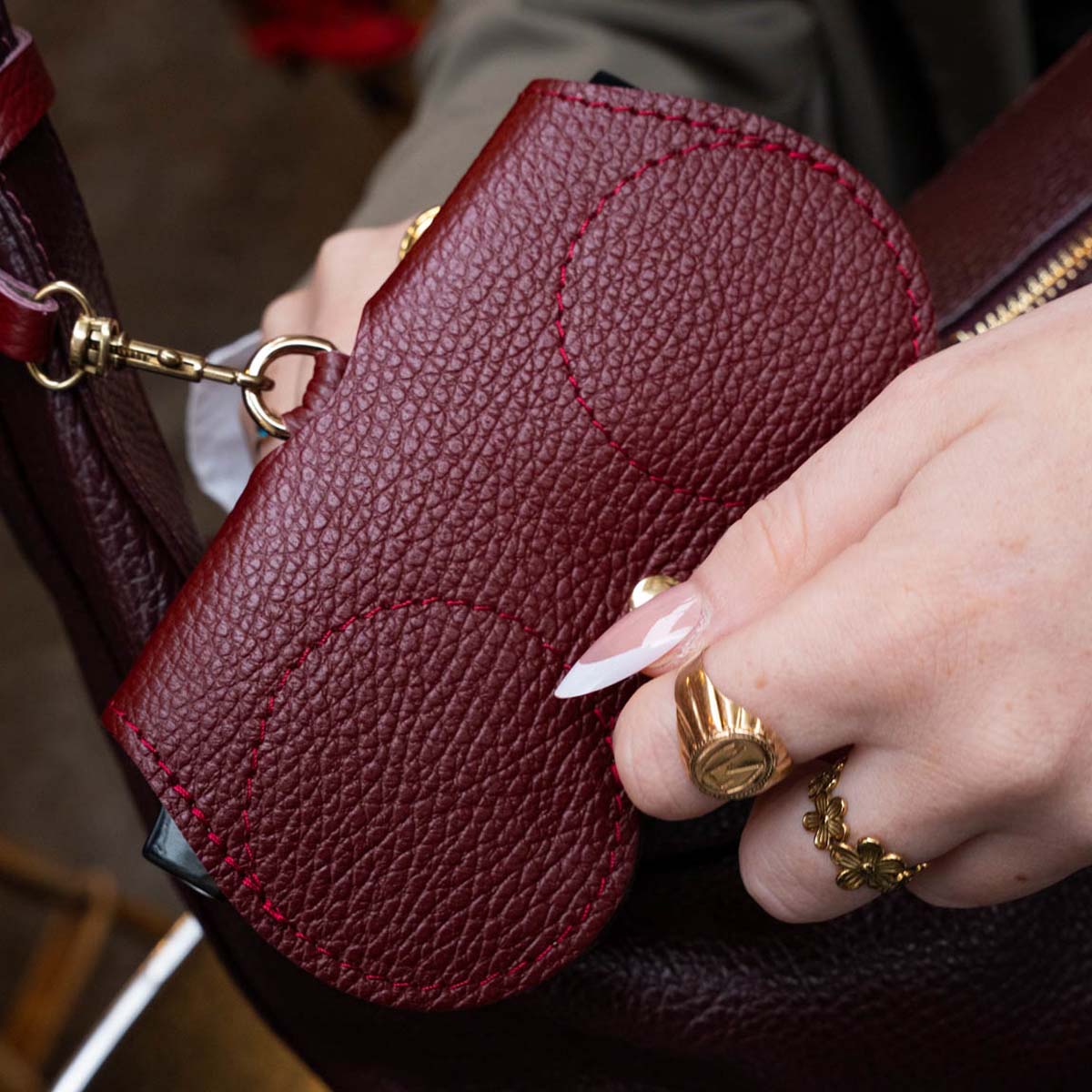 Cet étui à lunettes est conçu pour offrir à la fois protection et style. Sa fermeture à bouton-pression assure une fermeture sécurisée, tandis que la lanière permet de l’attacher facilement à votre sac ou à vos clés pour un accès rapide.