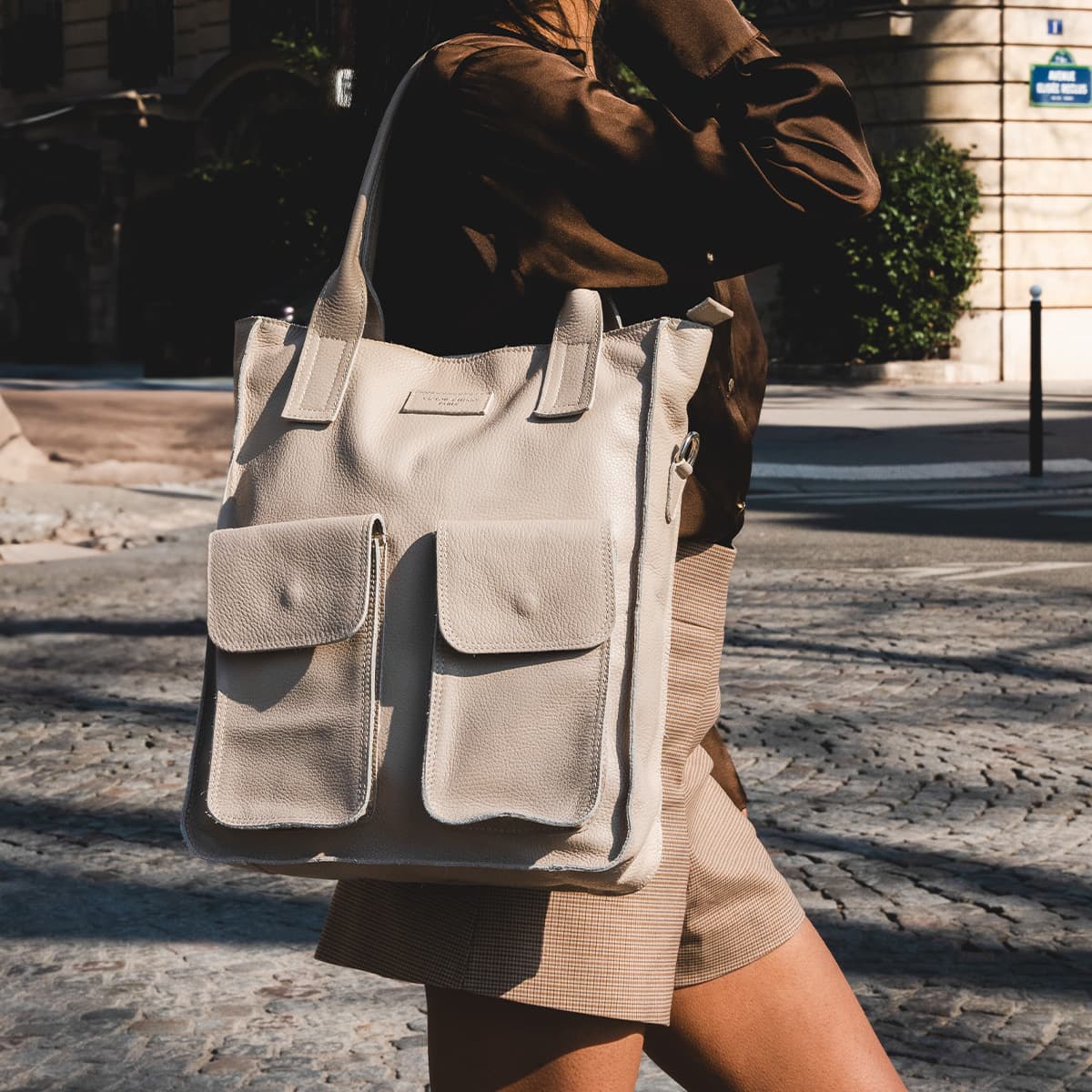 Ses deux grandes poches plaquées à rabat sur le devant ajoutent une touche de style tout en offrant un espace de rangement supplémentaire. Doté d’une bandoulière en cuir amovible, il s’adapte à toutes vos envies, que ce soit en porté main ou en bandoulière. Un modèle chic et fonctionnel pour une élégance sans compromis.