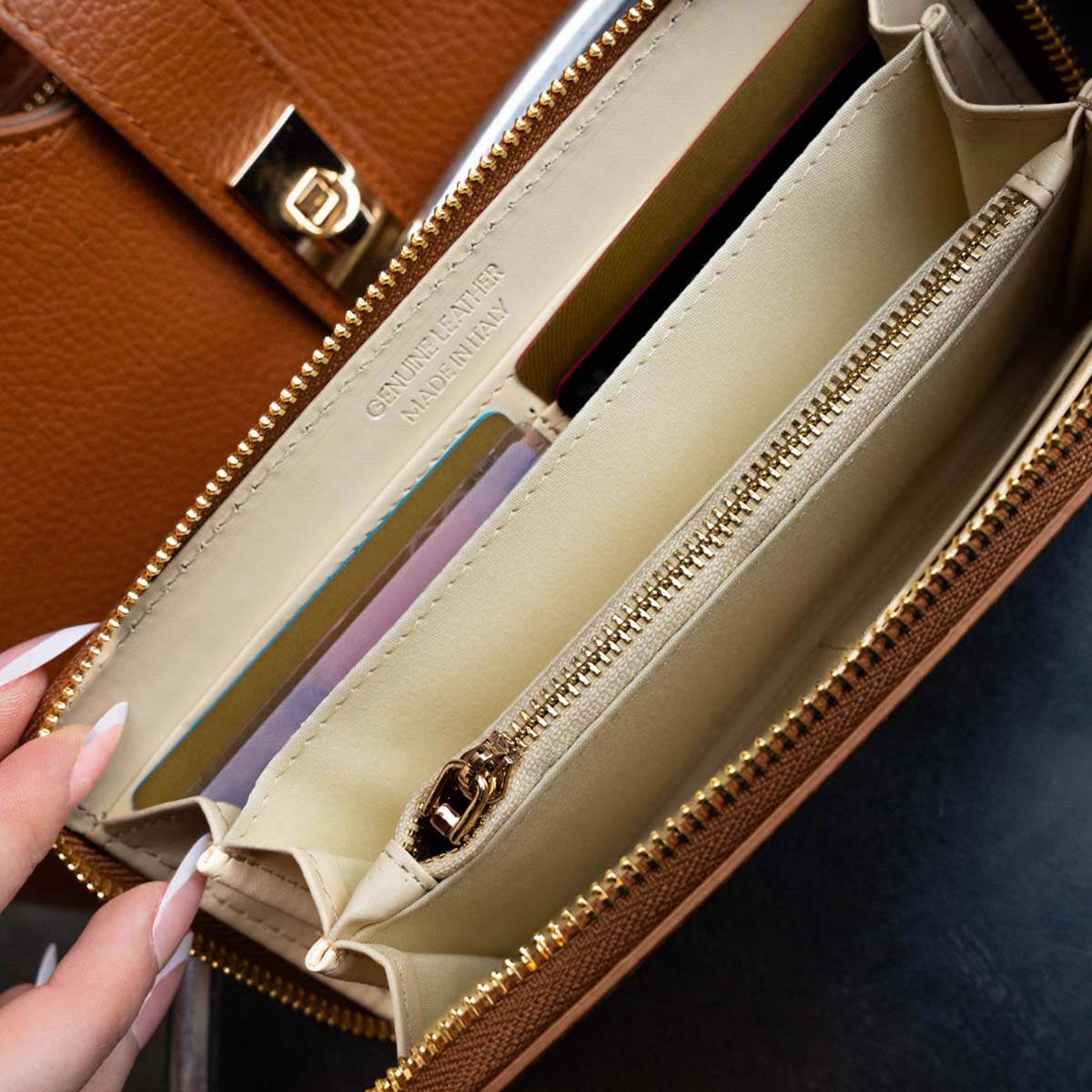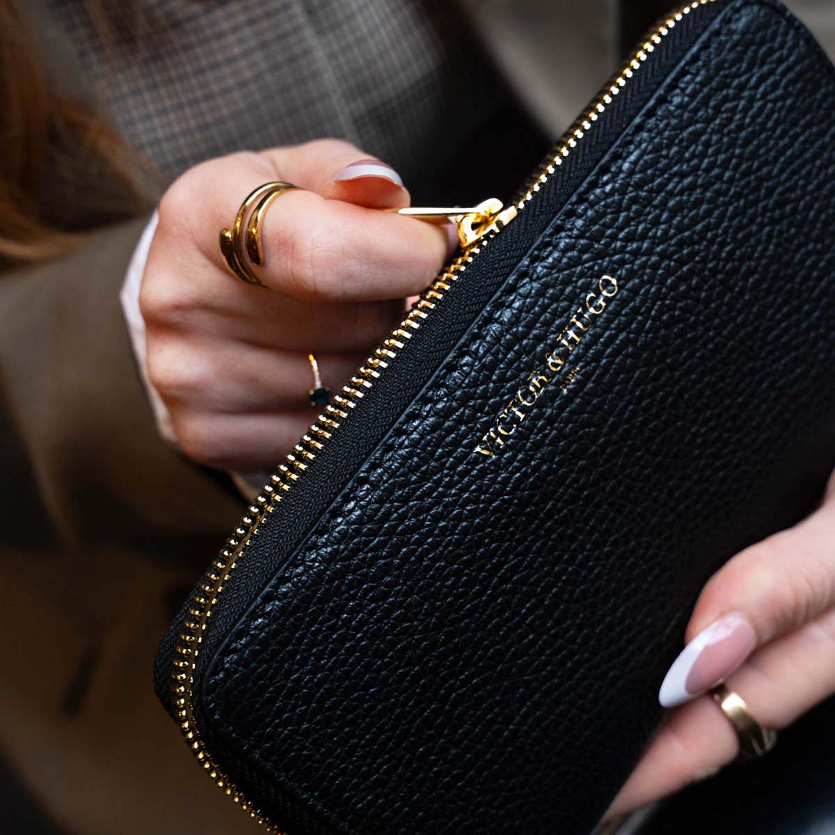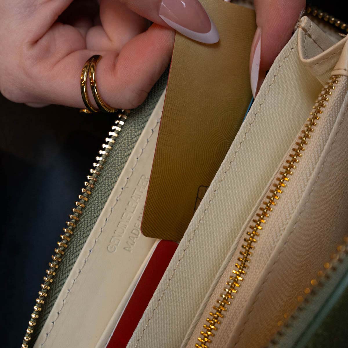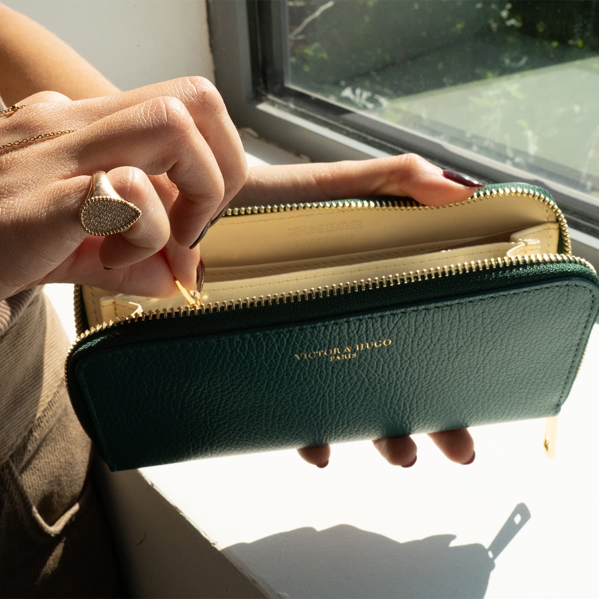 Ce portefeuille offre une organisation optimale avec ses 4 compartiments intérieurs, dont l’un est sécurisé par une fermeture éclair pour vos objets précieux. Des poches latérales supplémentaires permettent de garder vos cartes et billets bien rangés et facilement accessibles.