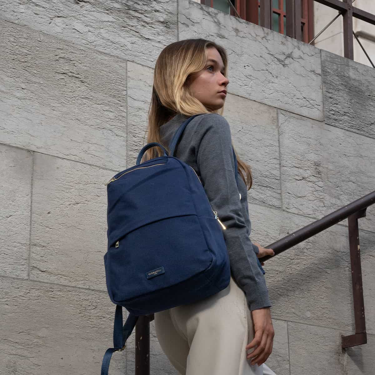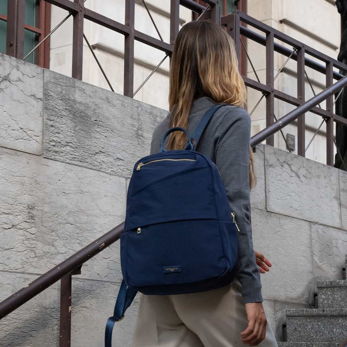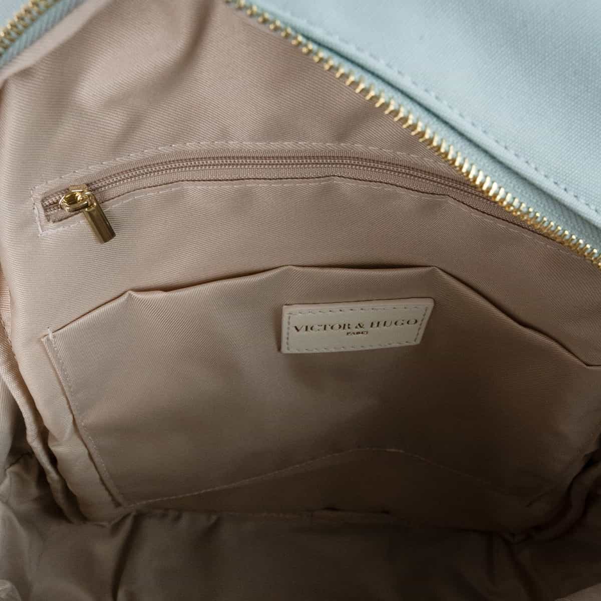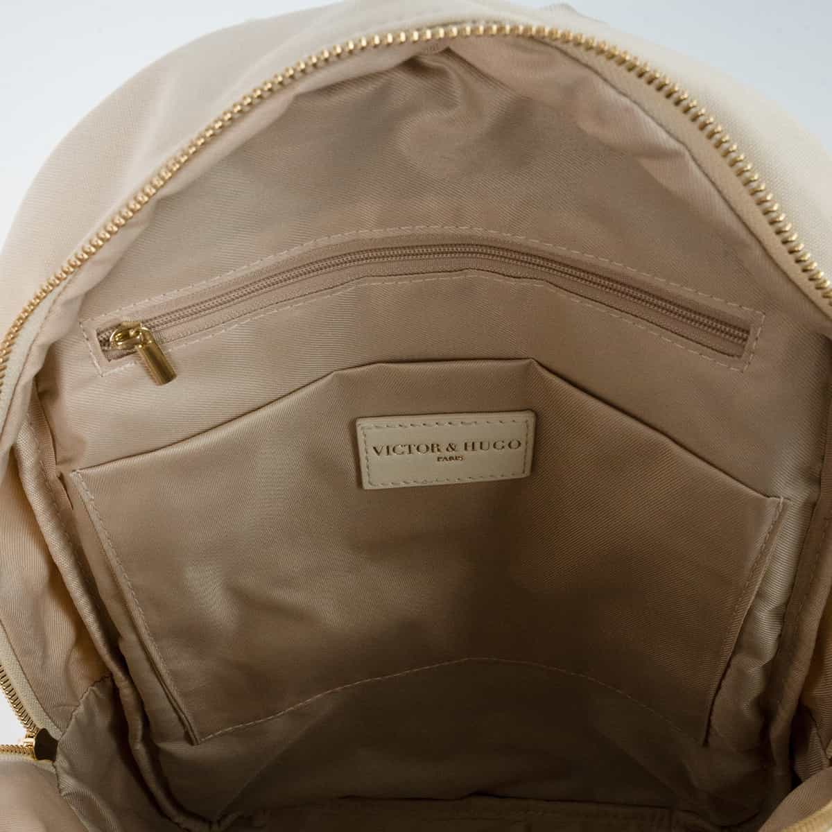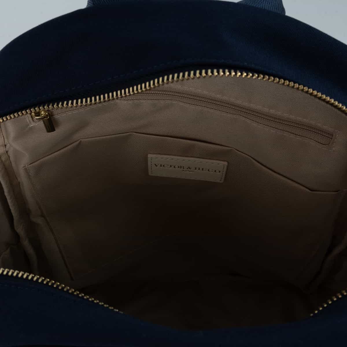 Le sac Tali en oxford porté dos se distinge par sa silhouette arrondie et son style minimaliste.Sonn format compact et épuré est agrémenté d’une fermeture zippée sur le dessus soulignée par une discrète étiquette en cuir embossé Victor & Hugo Paris.Il est doté de bretelles réglablesconfortables et d’une poignée haute pour une prise en main facile.A l’interieur le sac est doublé en opolyester et comprend un grand compartiment principal,une poche zippée et deux poches plaquée pour une organisation optimale.
